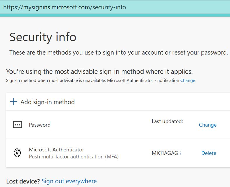 Увага! Якщо Ви маєте намір змінити мобільний пристрій, скинути його налаштування, видалити Автентифікатор, то до цих дій зайдіть у security-info та видаліть вказаний метод для його подальшого налаштування на новому пристрої.